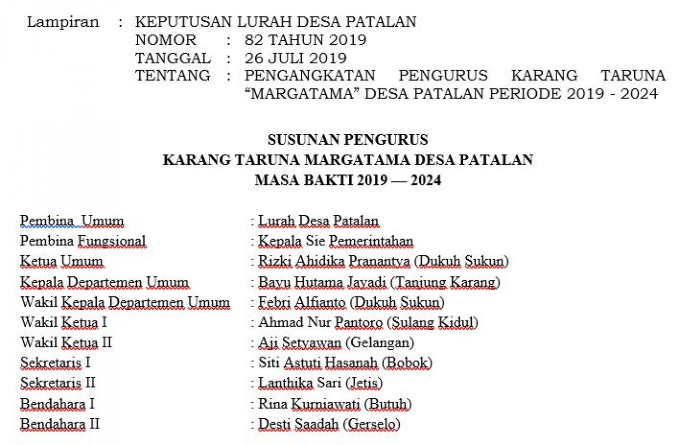 Kalurahan Patalan memiliki Karangtaruna "Margatama Patalan"