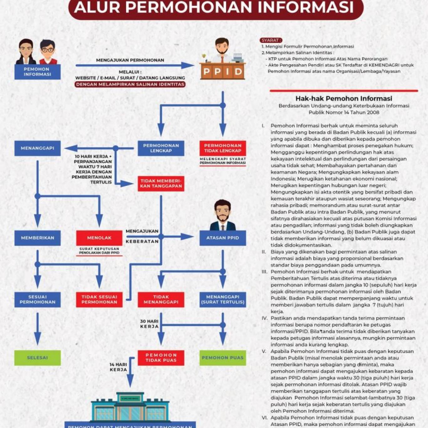 Sesuai dengan Peraturan Komisi Informasi Republik Indonesia Nomor 1 Tahun 2021 tentang Standar Layanan Informasi Publik, Berikut ini Alur Permohonan Informasi Publik pada PPID Kalurahan Patalan.