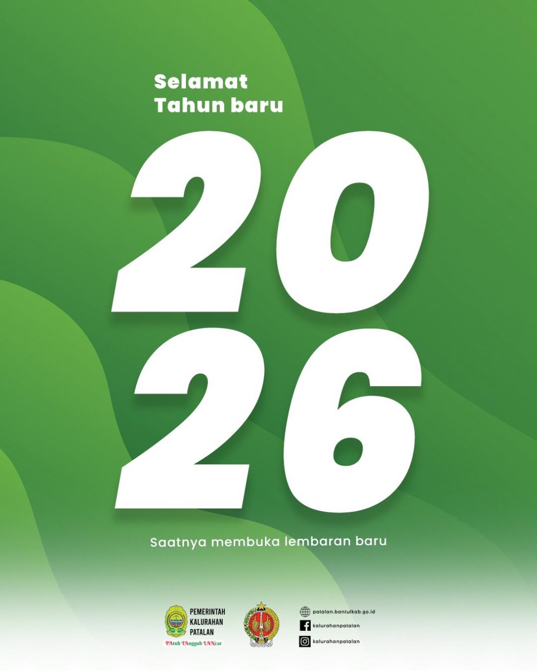 Selamat Tahun Baru 2026! Mari kita jadikan momentum ini untuk memperkuat sinergi dan semangat gotong royong demi kemajuan Kalurahan Patalan yang lebih sejahtera. Saatnya membuka lembaran baru dengan dedikasi yang lebih tinggi.