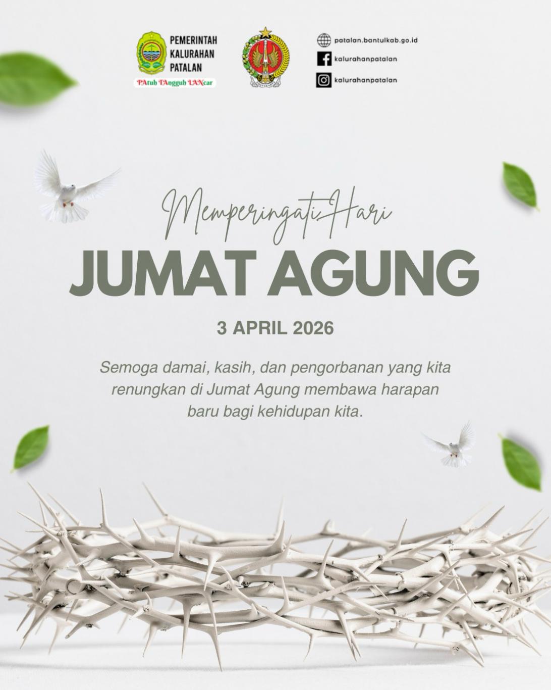 selamat memperingati Jumat Agung 2026. Mari kita merenungi makna pengorbanan dan kasih tanpa pamrih, agar menjadi lentera harapan dalam kehidupan kita bermasyarakat. Semoga damai sejahtera senantiasa menyertai kita semua