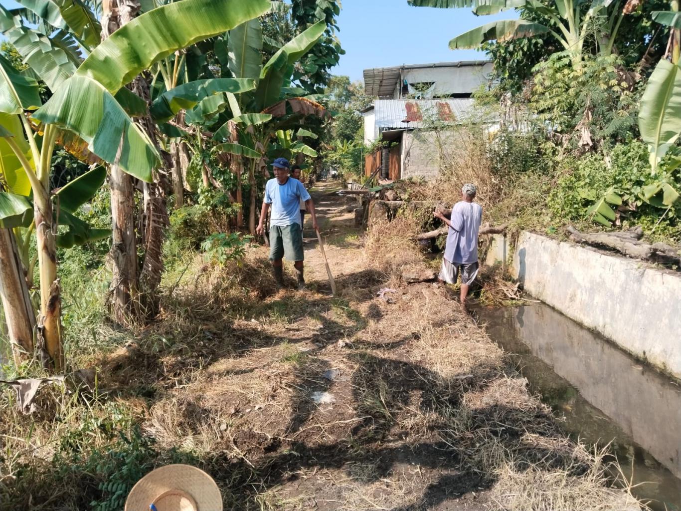 Kegiatan difokuskan pada pembersihan rumput liar yang mulai menutupi bahu jalan serta pengerukan sedimen tanah yang menyumbat saluran irigasi di sisi jalan. Pembersihan ini sangat penting dilakukan untuk mencegah kerusakan jalan akibat genangan air dan memastikan distribusi air ke sawah-sawah warga berjalan lancar tanpa hambatan.