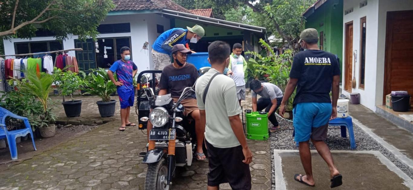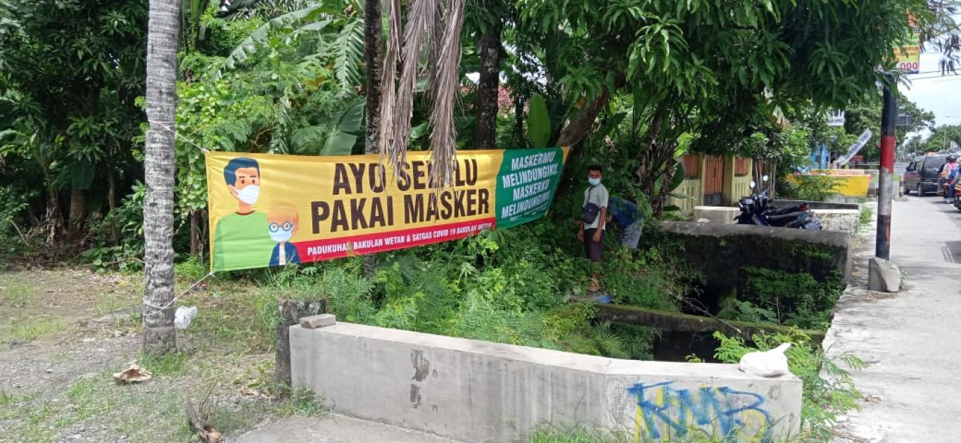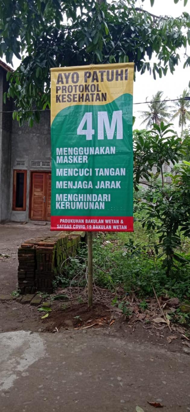 Dusun Bakulan wetan melaksanakan penyemprotan disinfektan dan pemasangan spanduk dan banner Himbauan 4M Covid-19